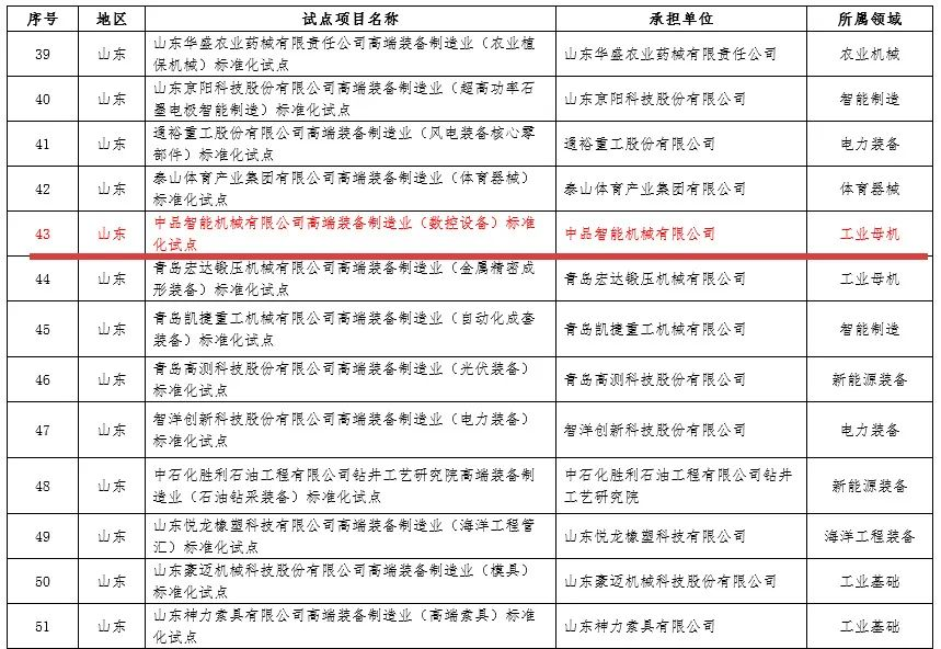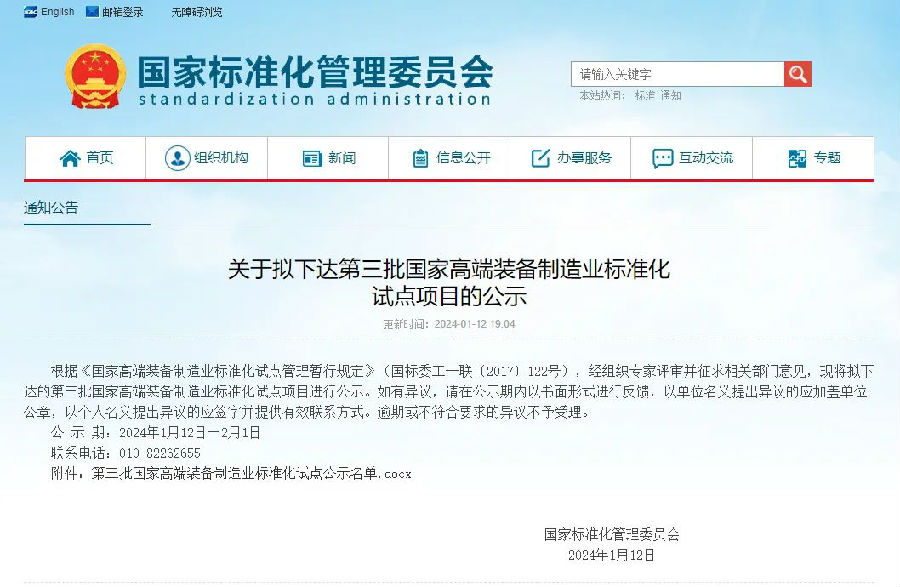 2024年1月12日,國家標準化管理委員會公布了第三批國家高端裝備制造業(yè)標準化試點項目,中品智能機械有限公司入選。